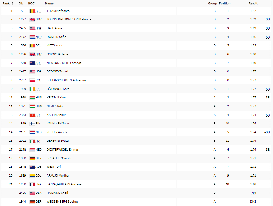 | Høydehopp | Q | F | ||||||||||||||||||||||