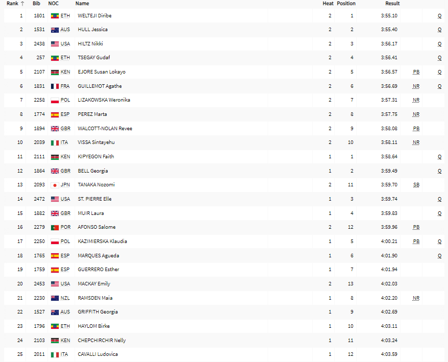 | 1500 m | H | QH | SF | F | ||||||||||||||||||||