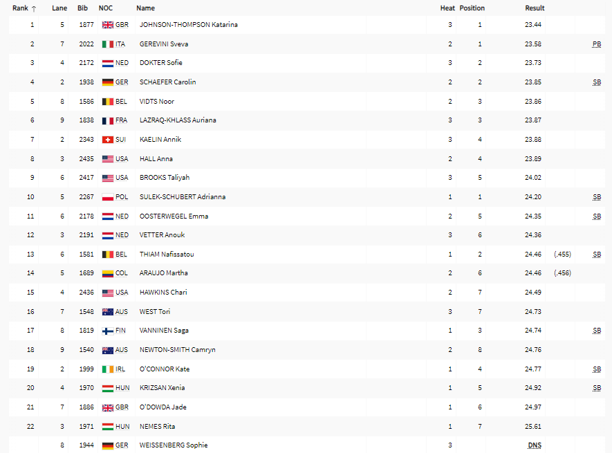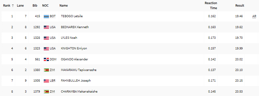 | 200 m | H | QH | SF | F | ||||||||||||||||||||