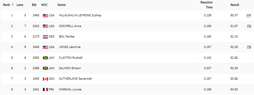 | 400 m | H | QH | SF | F | ||||||||||||||||||||