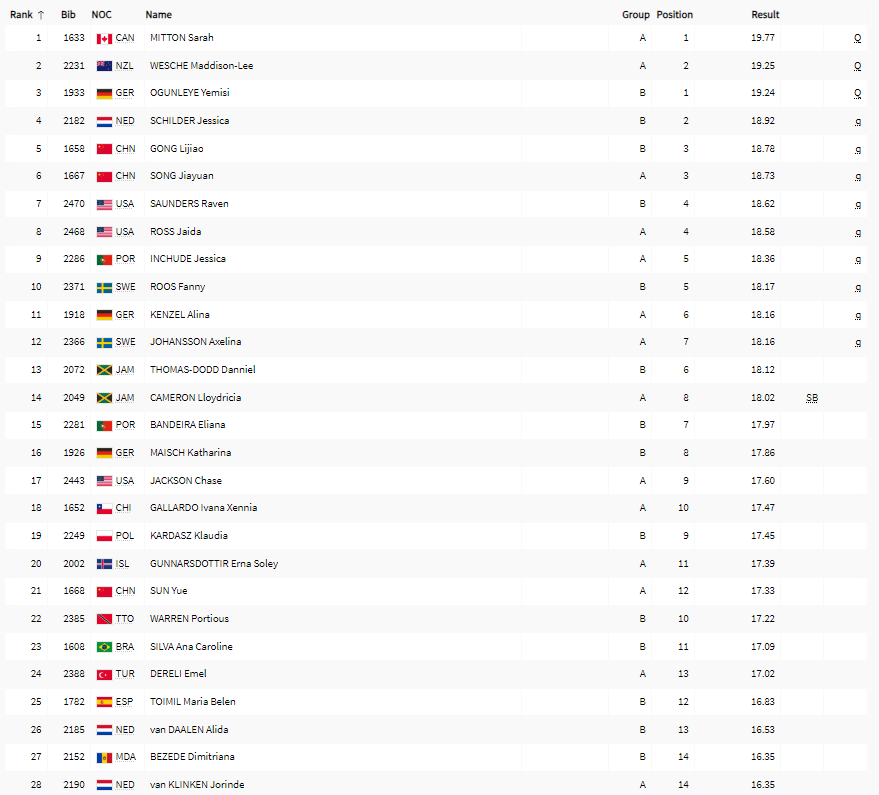 | Lengdehopp | Q | F | ||||||||||||||||||||||