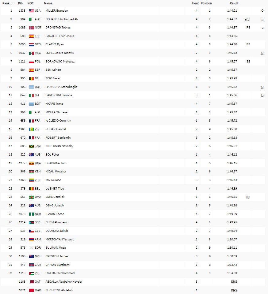 | 800 m | H | QH | SF | F | ||||||||||||||||||||