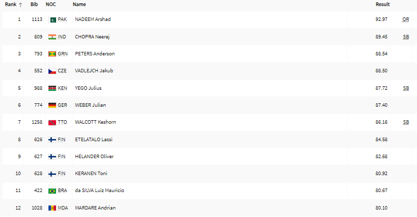 Startlister, program og resultater for Friidrett OL Paris - Torsdag 8. august 2024.