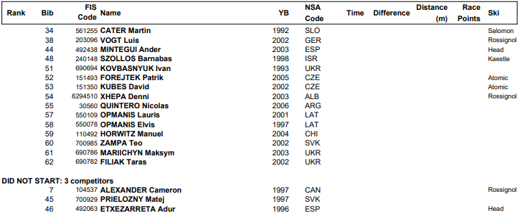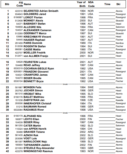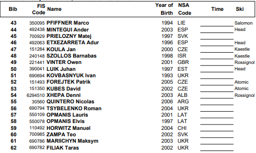 Startlister og resultater fra Super G menn under VM alpint Saalbach 7. februar 2025.