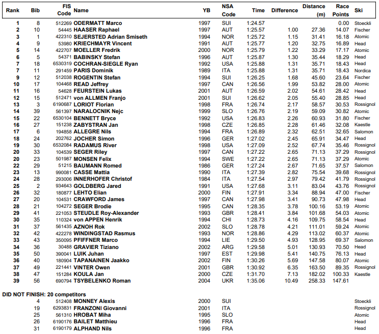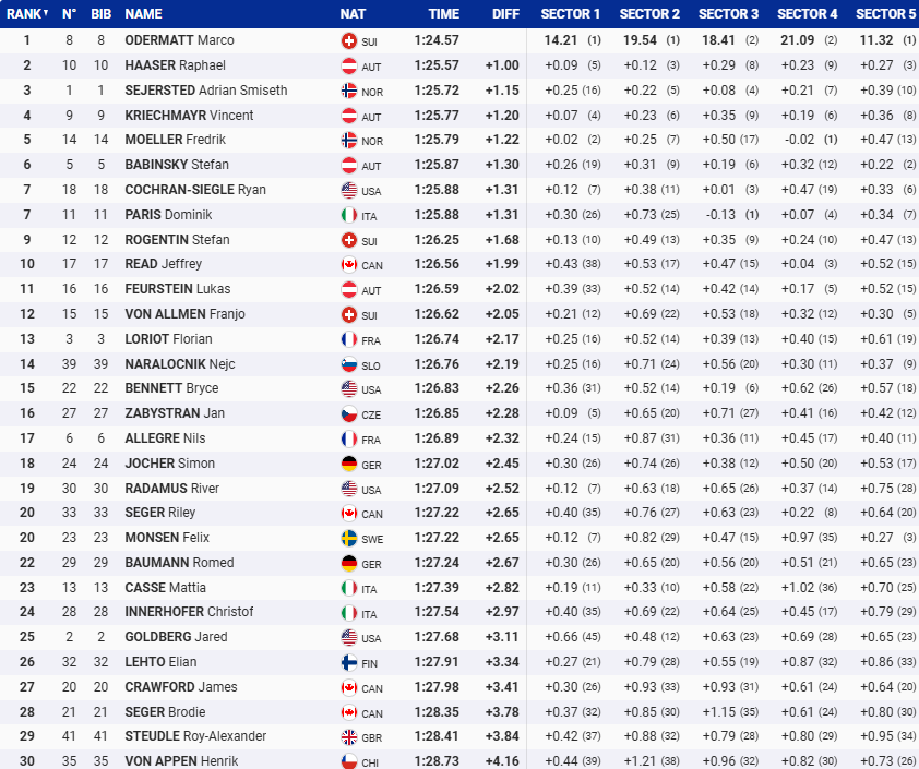 | Marco Schwarz |  Østerrike | 6 | 1 | 1 | 4 |