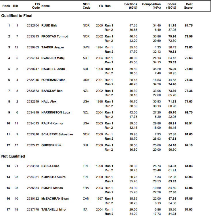 Halfpipe menn, kvalifisering