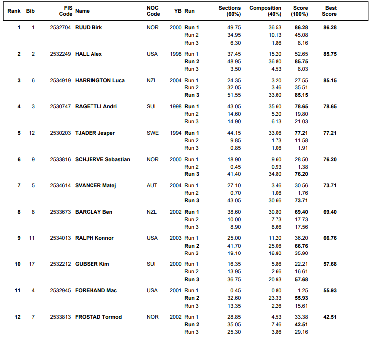 Big Air menn, finale