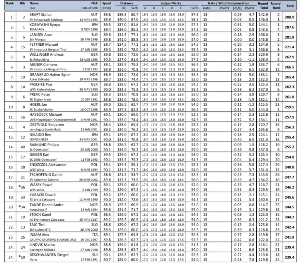 Sammenlagtstilling i Hoppuka før Bischofshofen