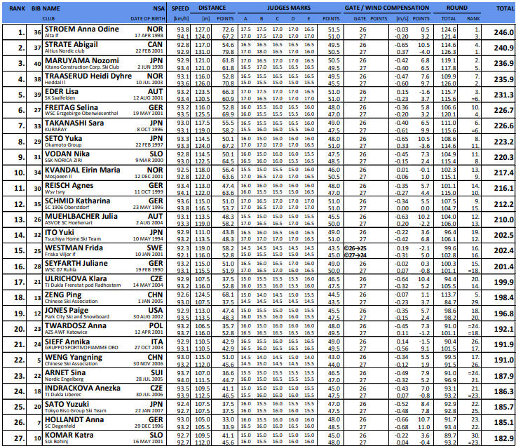 ● Nozomi Maruyama (JPN) did not compete in the women’s World Cup events in