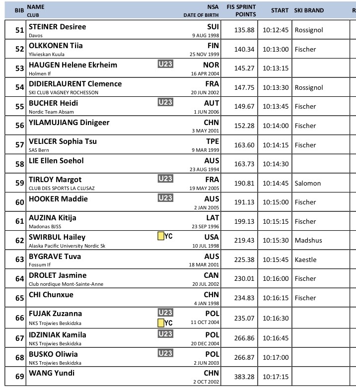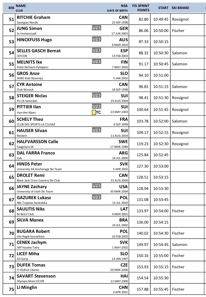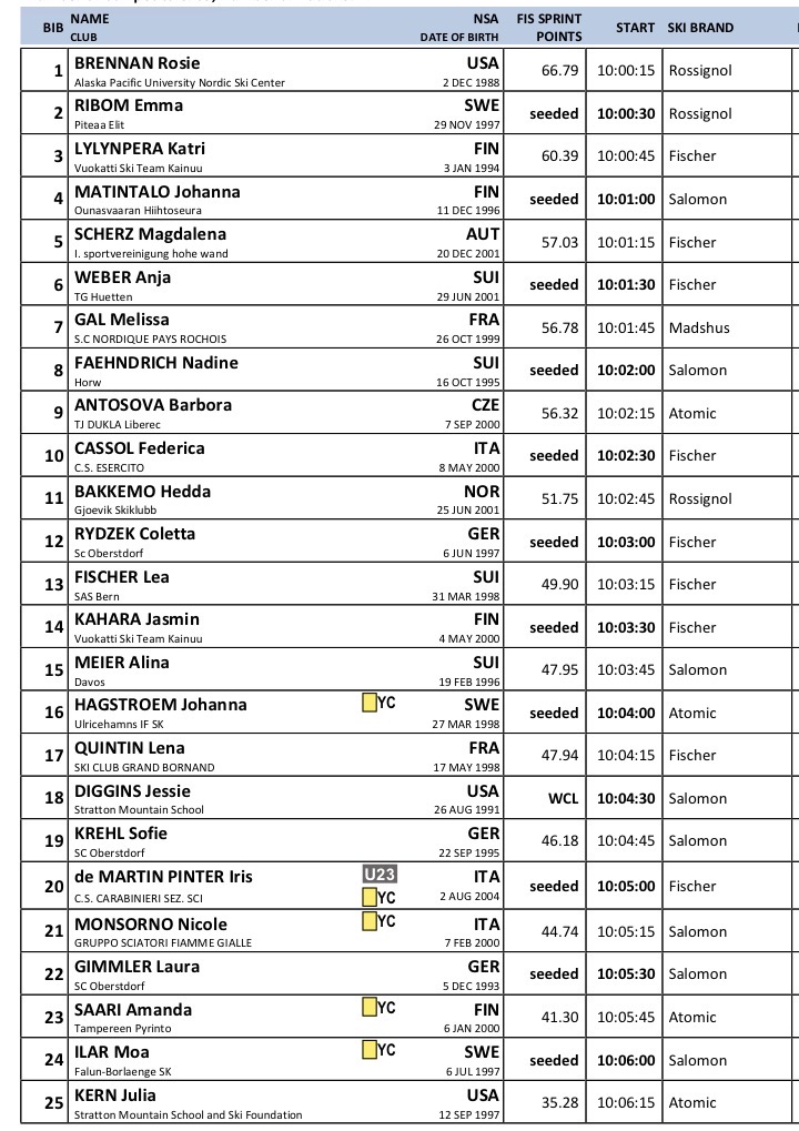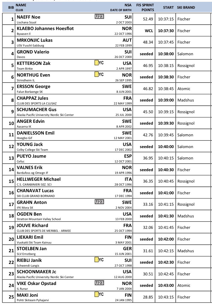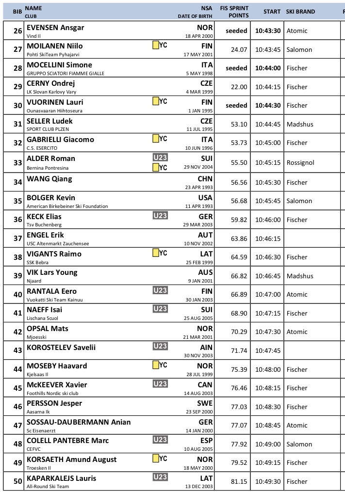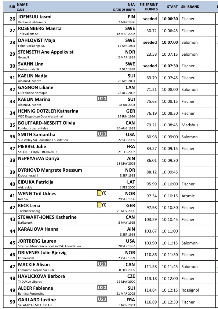 Startlister og resultater fra Sprint klassisk som arrangeres Verdenscup langrenn Goms som arrangeres 24. januar 2026.