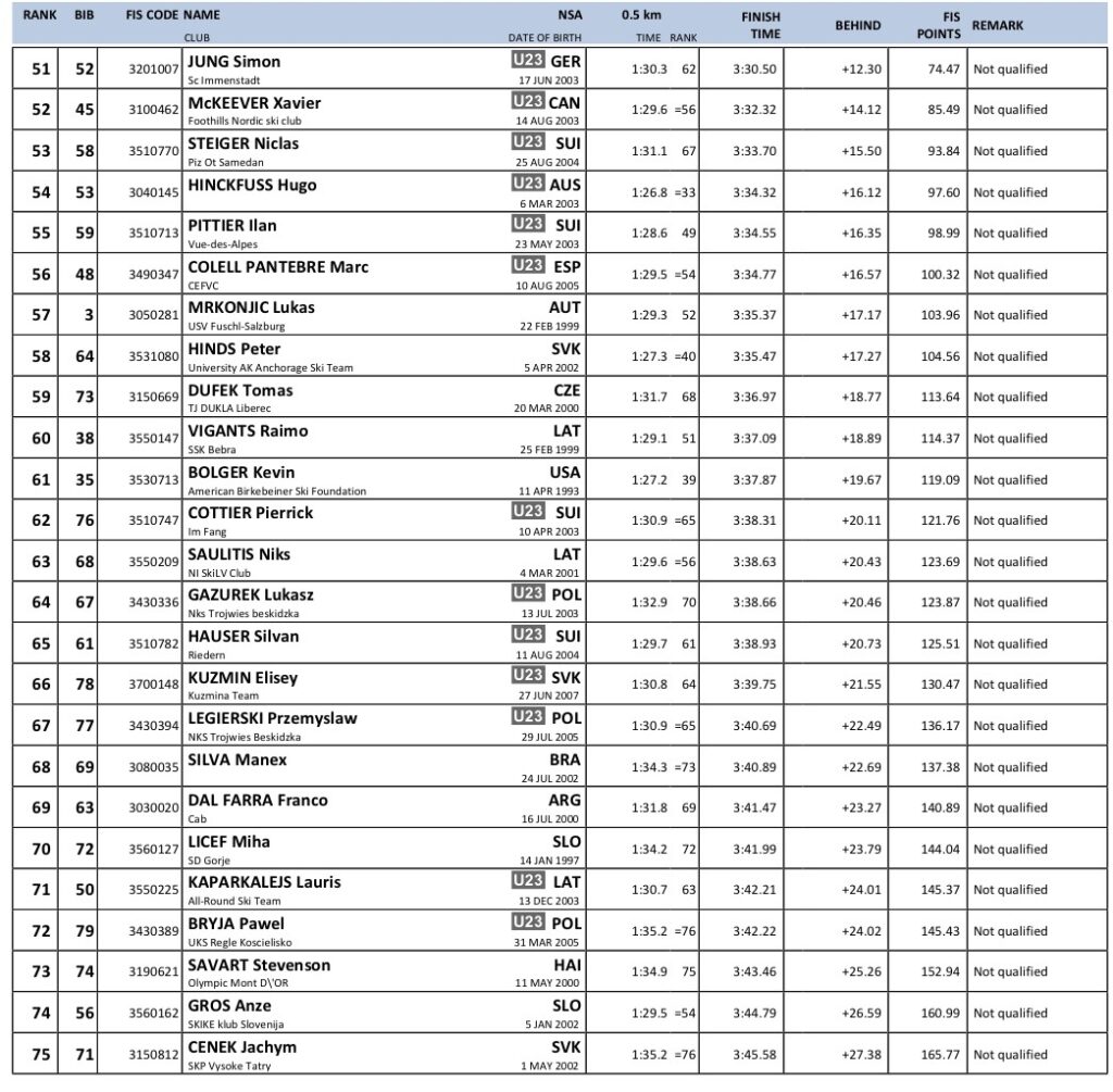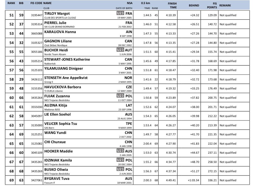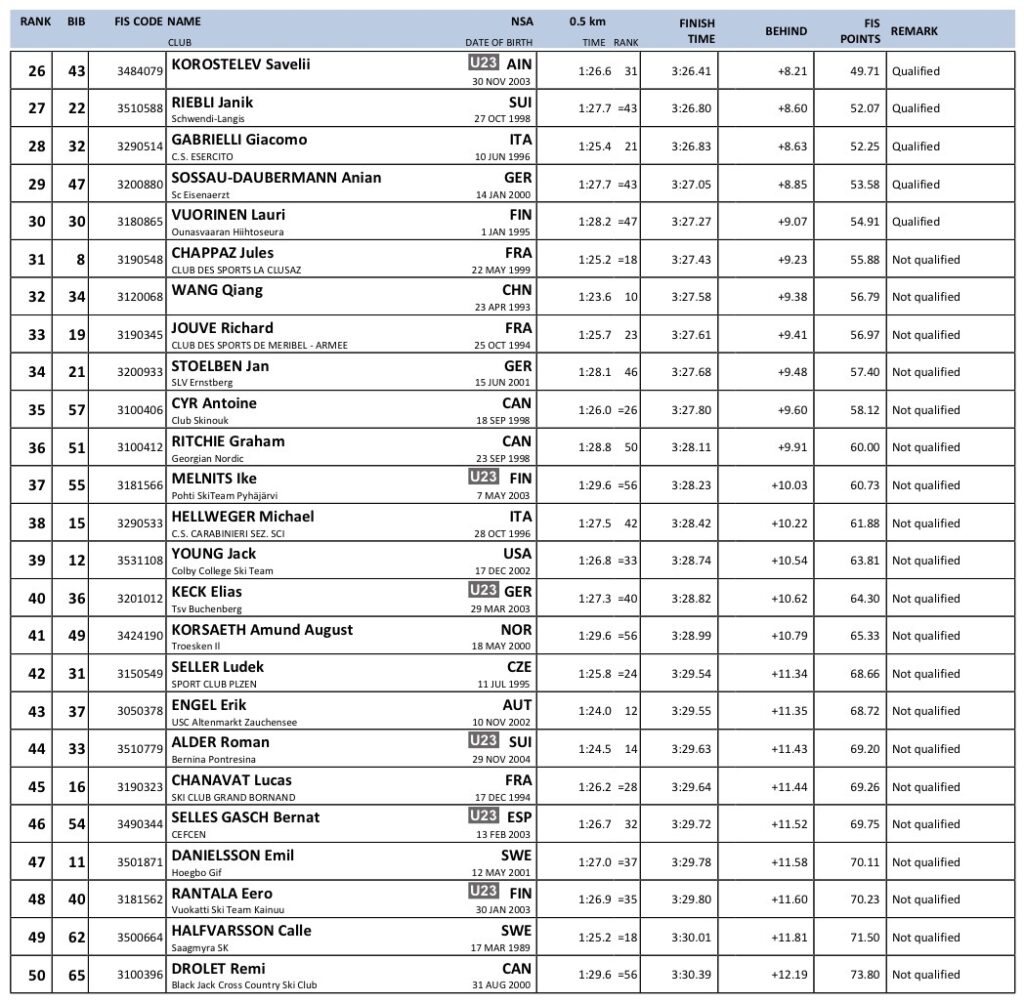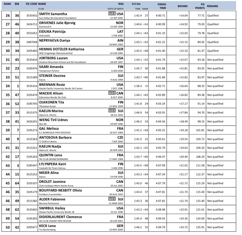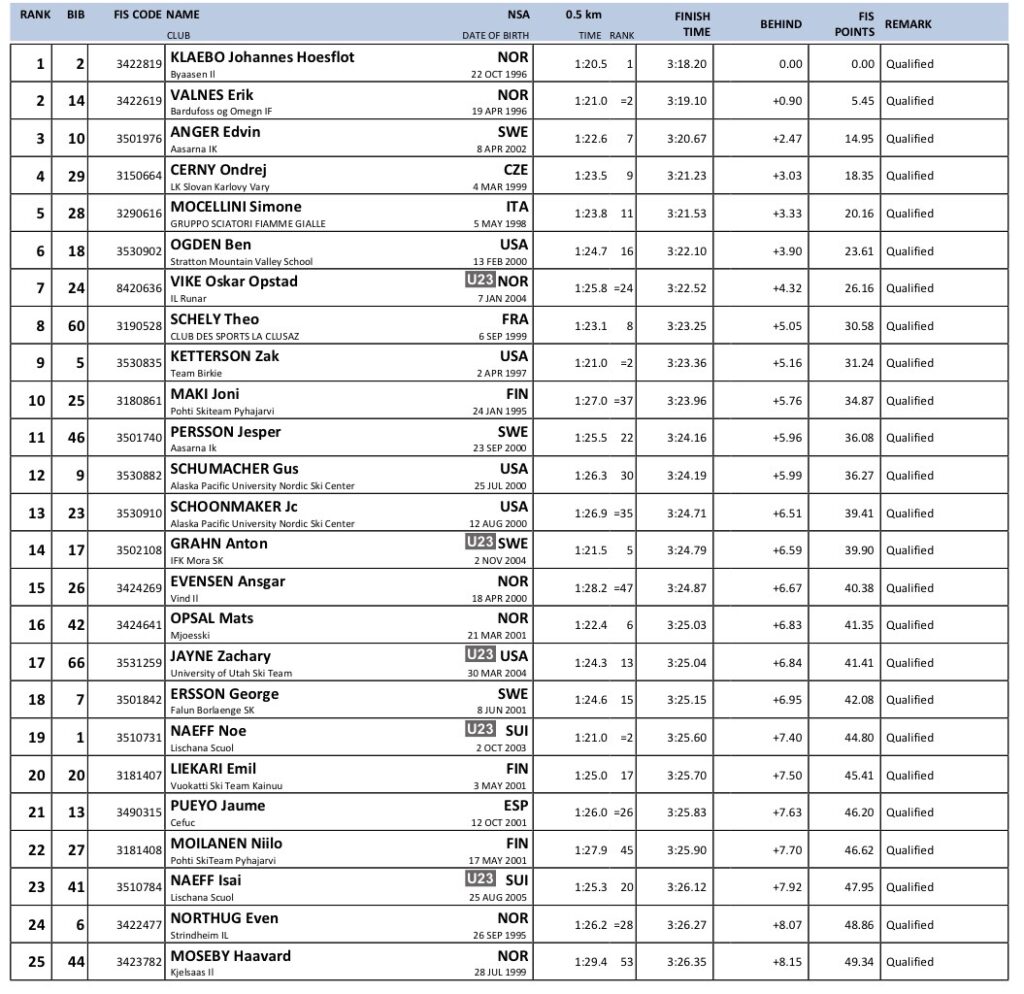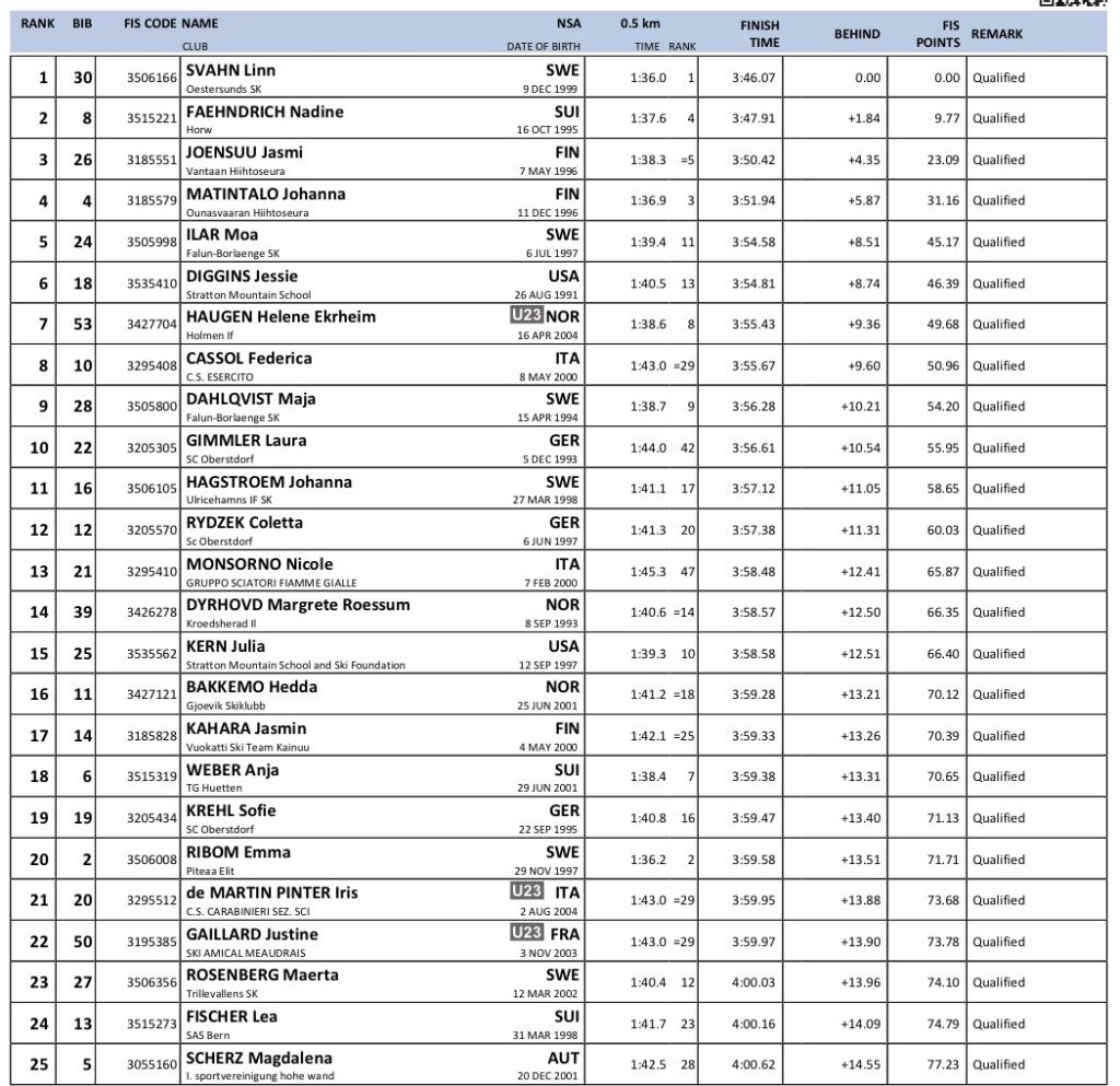 Alle resultater verdenscup langrenn Goms 2026