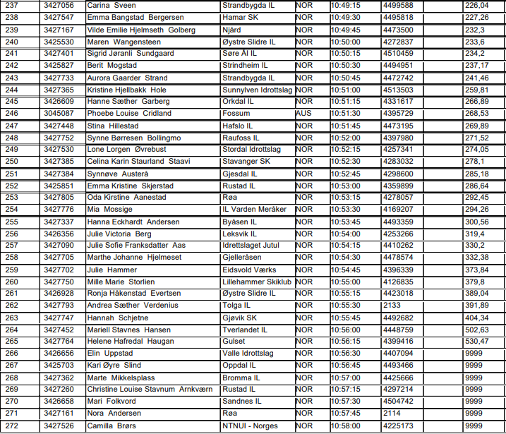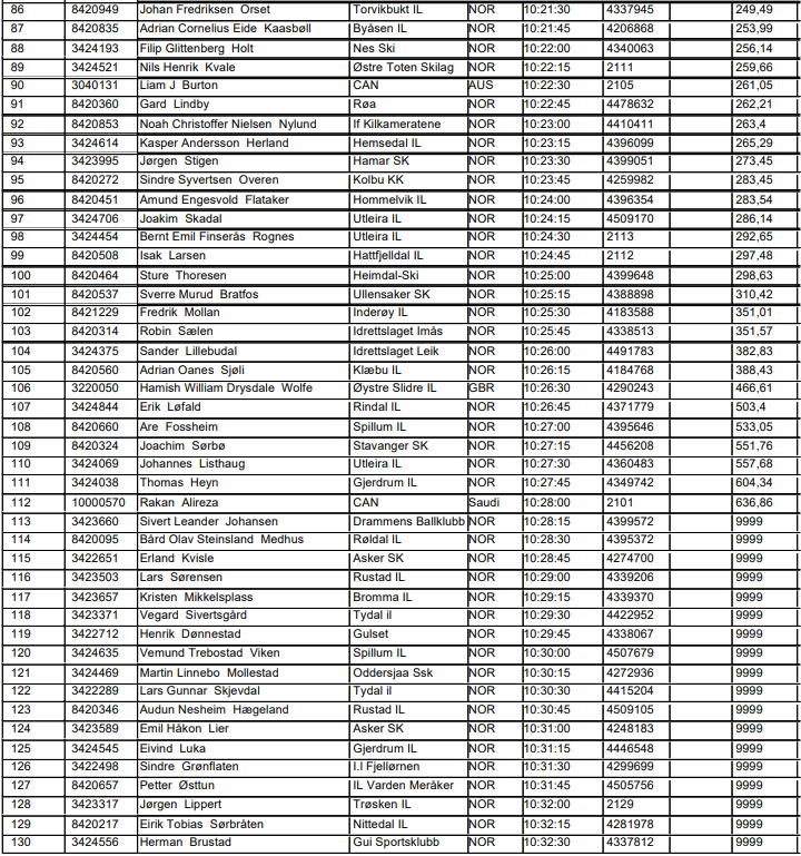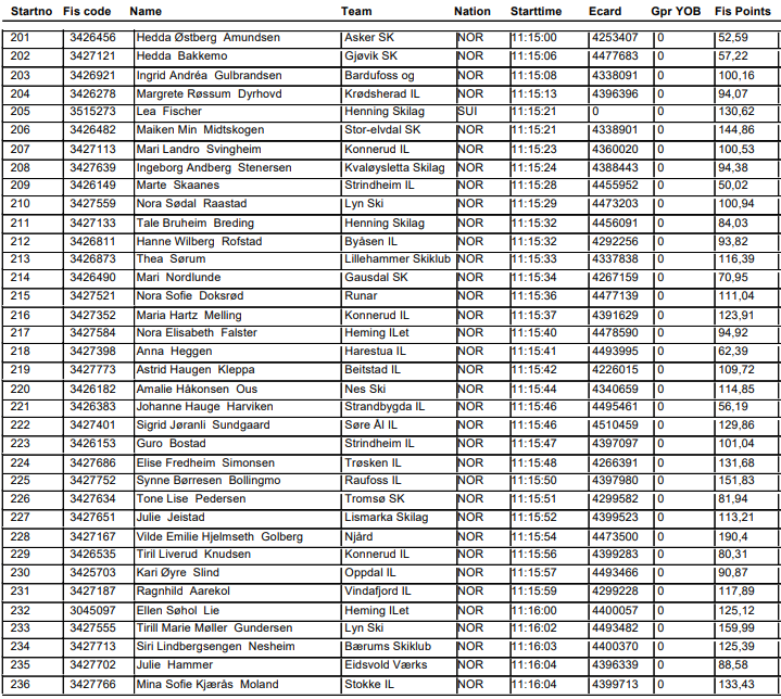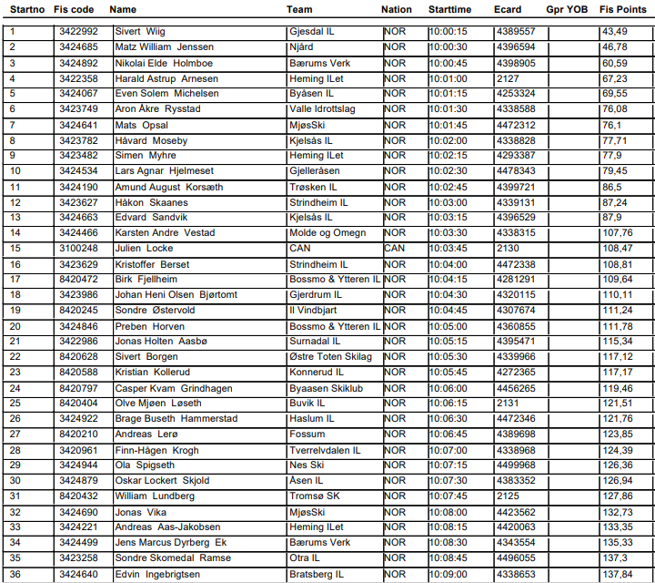 Startlister fra norgescup langrenn Steinkjer som arrangeres 7. - 9. februar 2025.