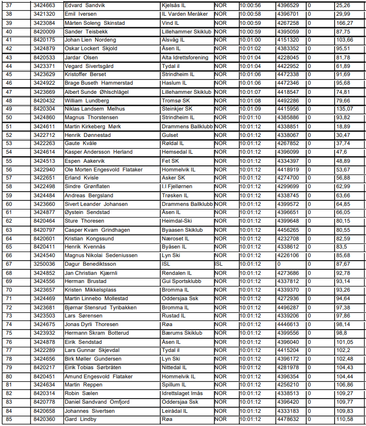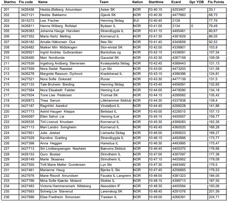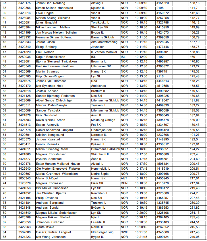Fredag 7. februar – 20 km intervallstart fri teknikk