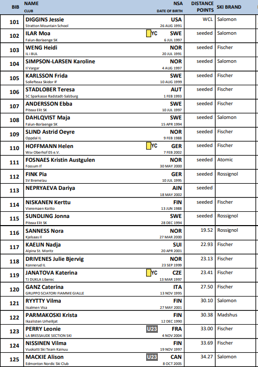 Startlister for 50 km under verdenscup langrenn Holmenkollen 14. mars 2026.