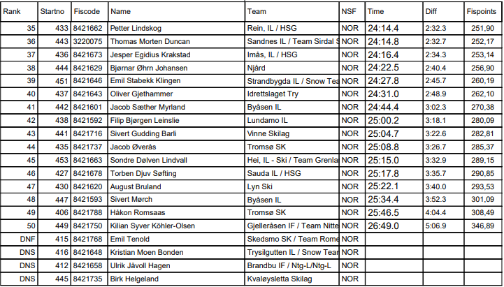 Alle resultater fra Norgescup junior Hovden 2025