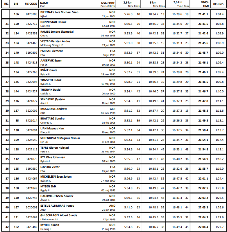 | Johannes Høsflot Klæbo | 23:20,9 | ||