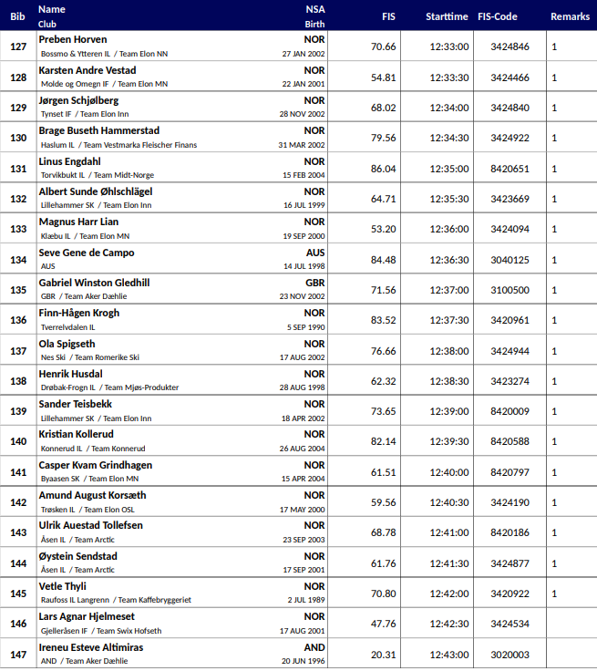| 6. | Andreas Fjorden Ree | + 19,2 |