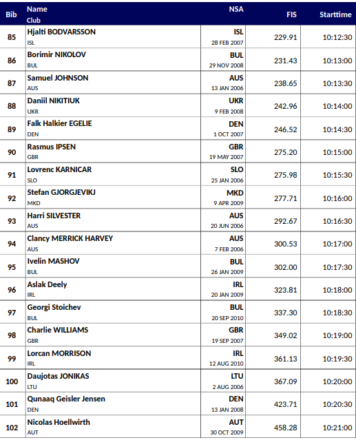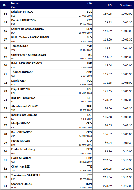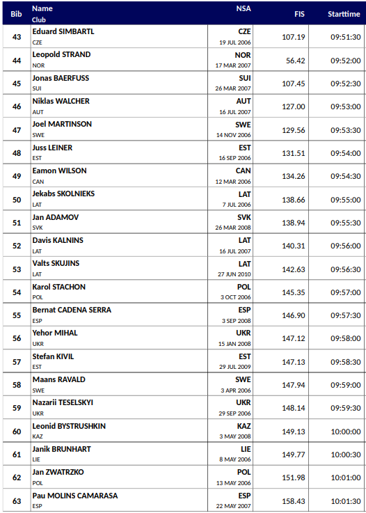 Startlister