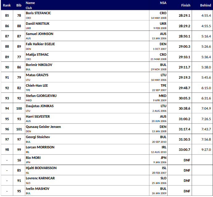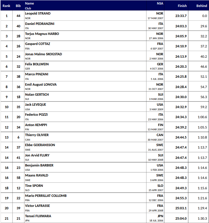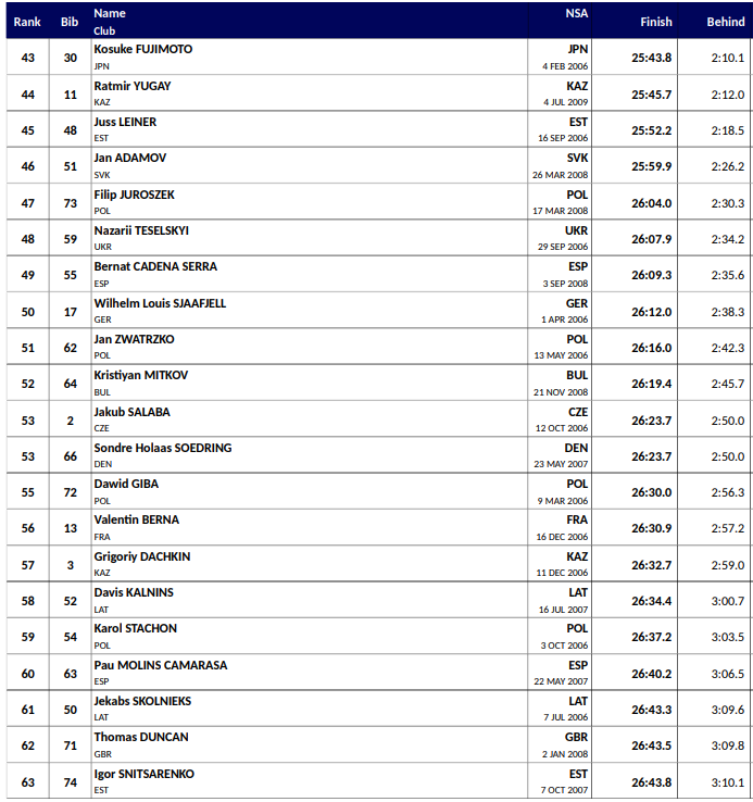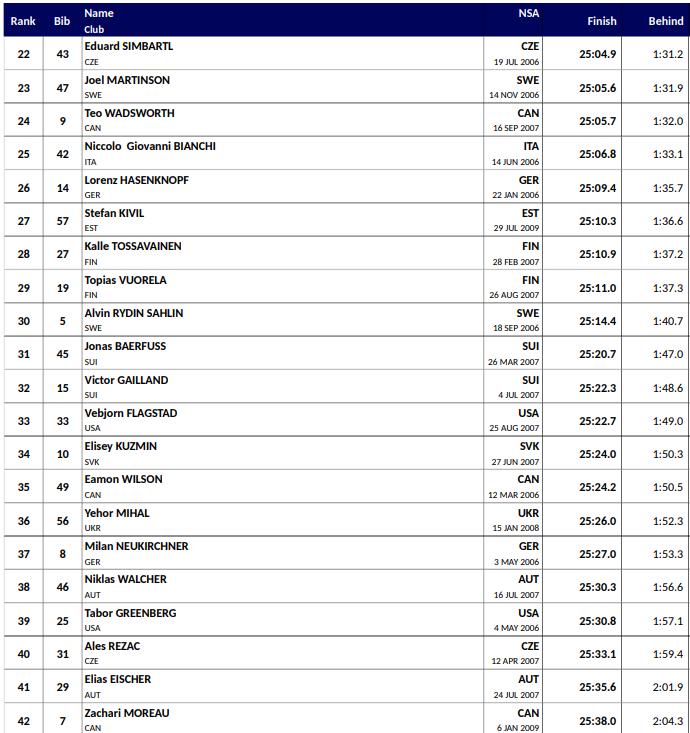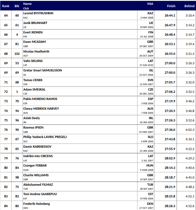 Alle resultater Junior VM langrenn Lillehammer 2026