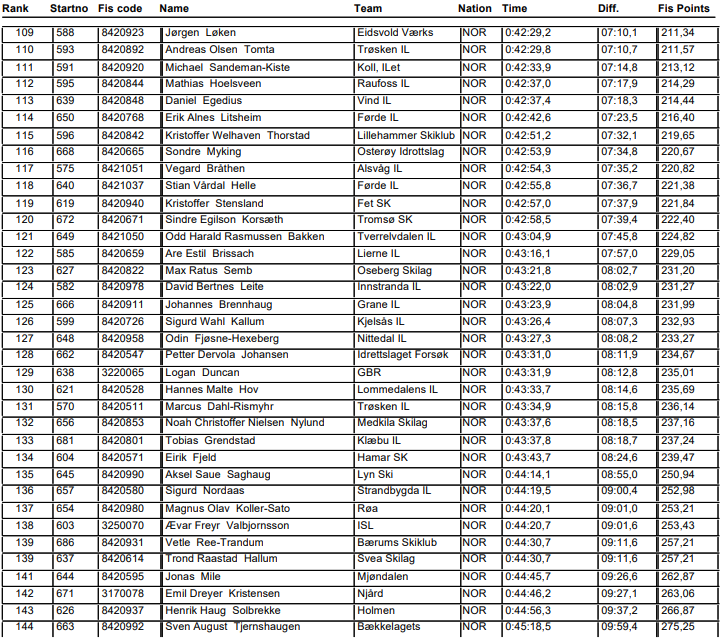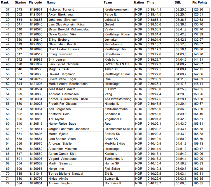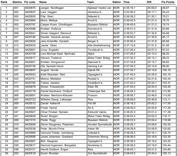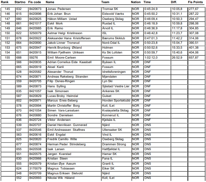 Resultater fra 15 km fri fellesstart M19-20 norgescup junior Lygna som arrangeres 20. januar 2024.