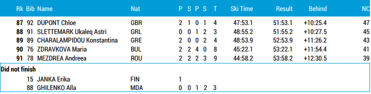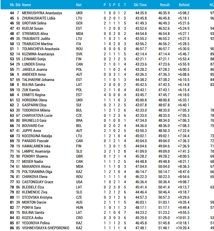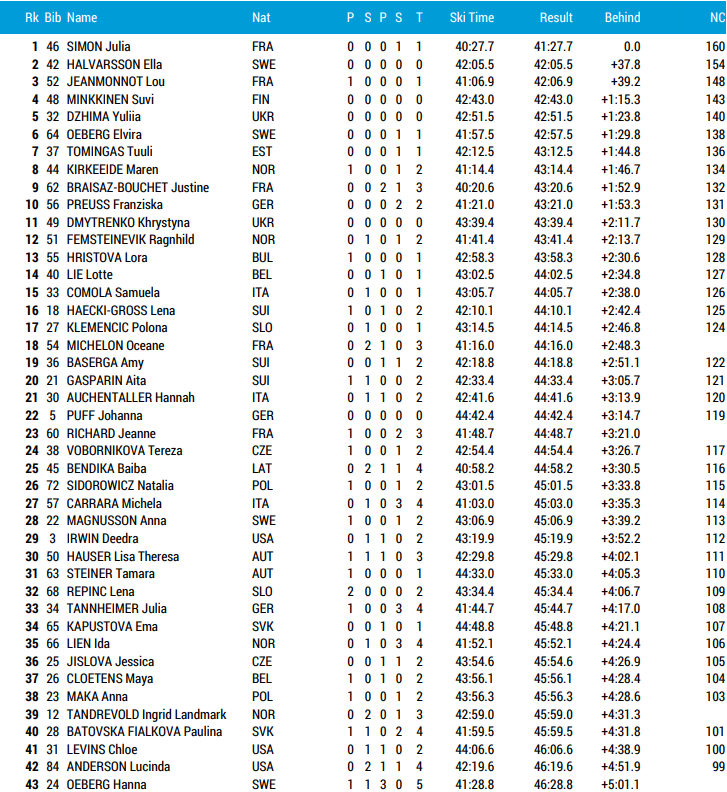 Alle resultater VM skiskyting Lenzerheide