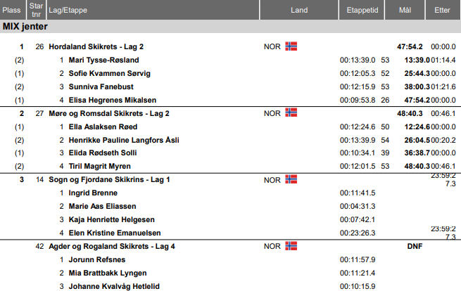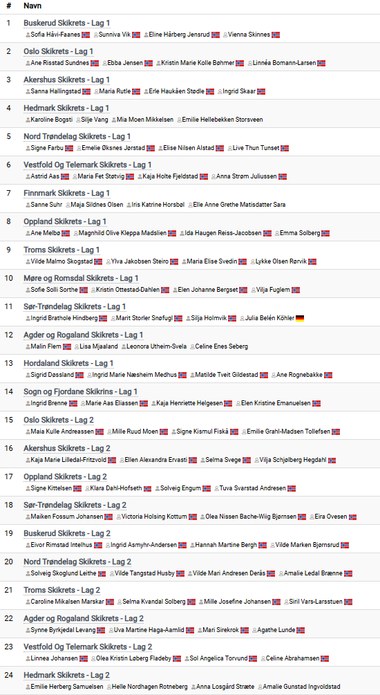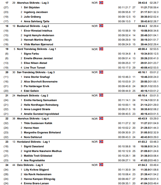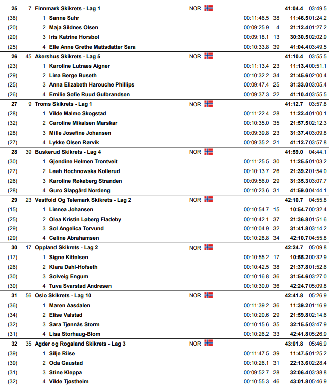 - Kl 09.30: 4×5 km stafett jenter (KKFF)