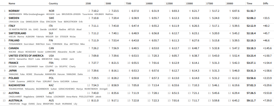 Resultater mixstafett junior VM lørdag 4. februar 2023.