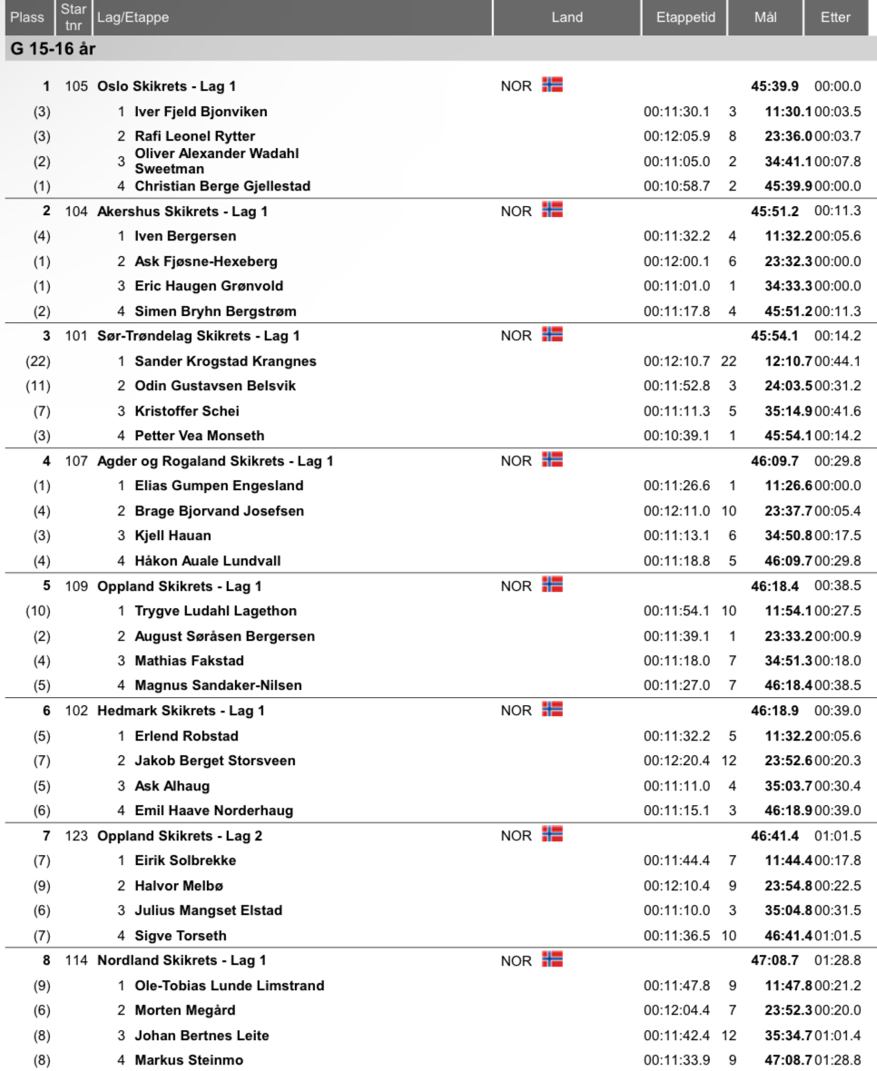 4×5 km stafett menn Hovedlandsrennet Holmenkollen 2025