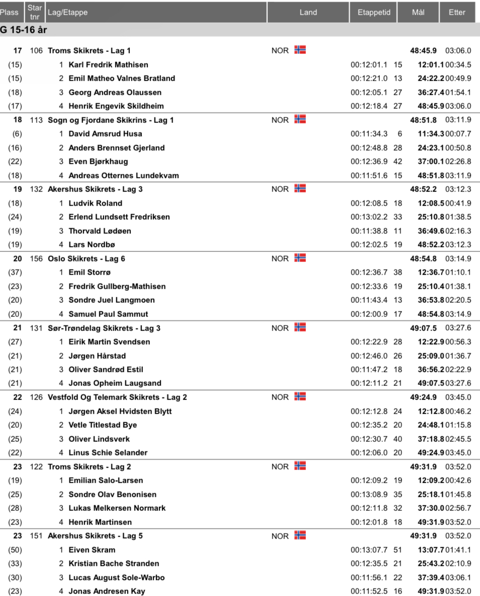 Alle resultater Hovedlandsrennet 2023