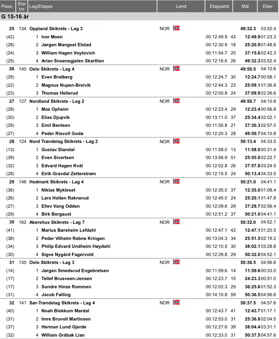 Resultater alle renn under Hovedlandsrennet 2025