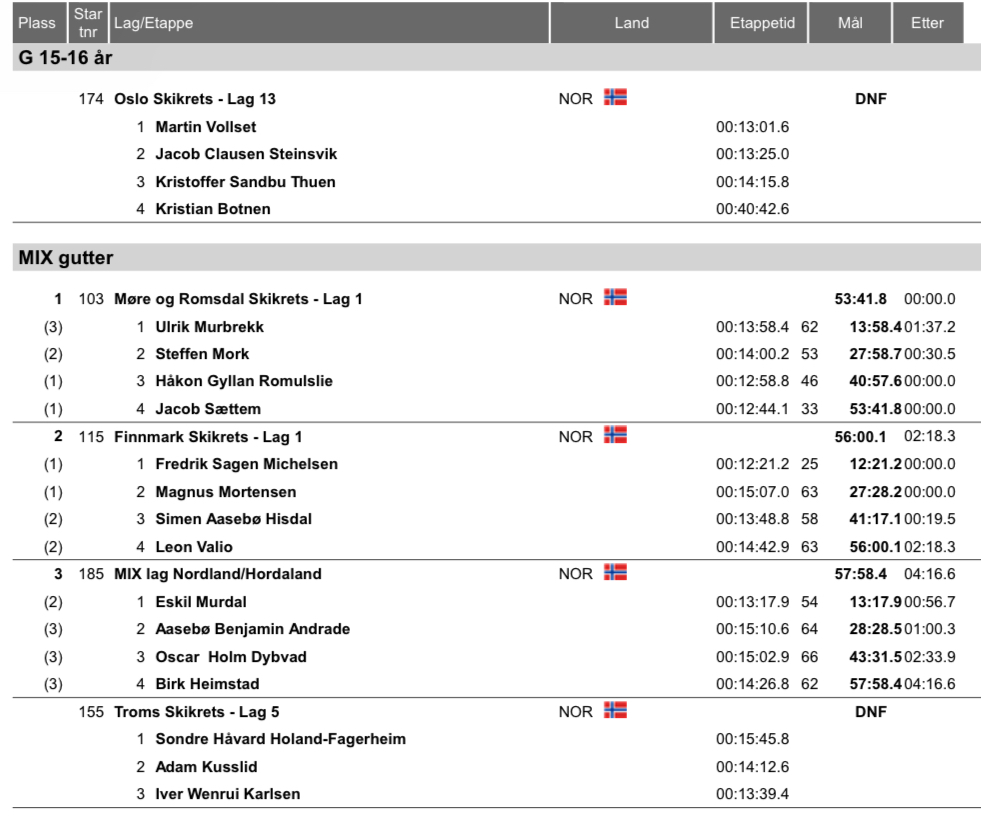 - Kl 11.00: 4×3,75 km stafett gutter (KKFF)