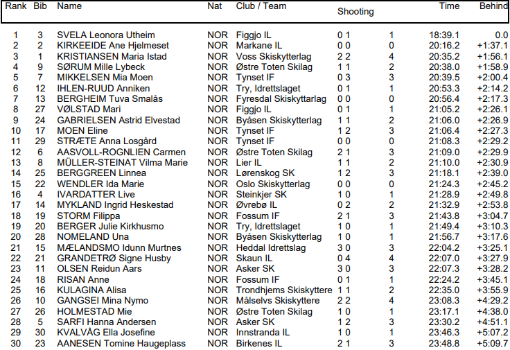 | Alisa | Kulagina | Trondhjems Skiskyttere | Sør-Trøndelag SSK |