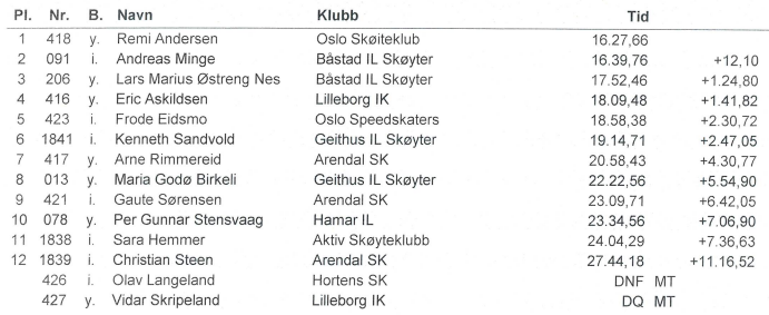 Startlister og resultater fra Båstad 10000 meter som arrangeres på Trøgstad Sparebank Is Arena 3. januar 2026.