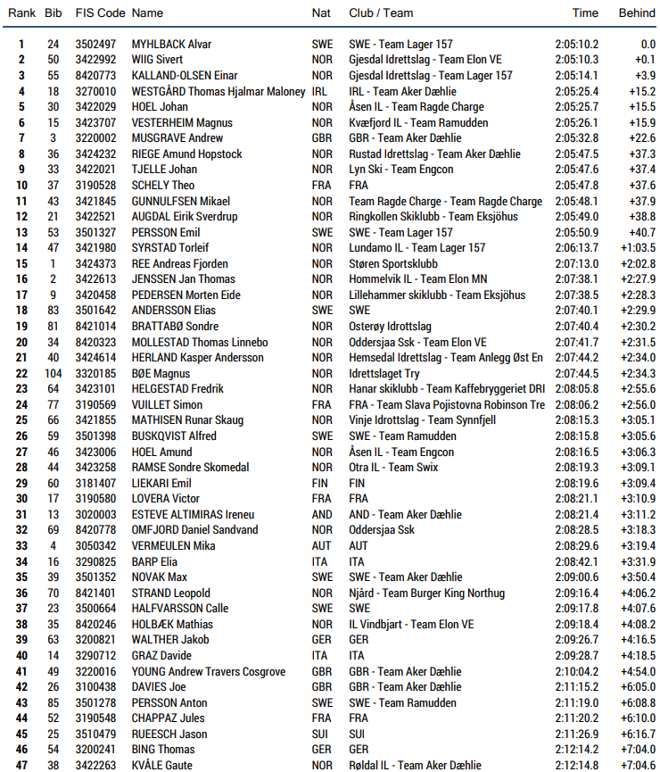 8 Markus Nordgren Mykkeltvedt Lyn Ski M 19-20 år 1:01:25.0 0:23.5