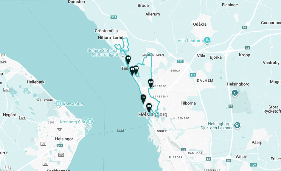 Höjdpunkter: City, Råå hamn, Ramlösa brunnspark, Jordbodalen, Fredriksdal, Kärnan, Maria Park, Pålsjö skog, Laröd, Strandpromenaden