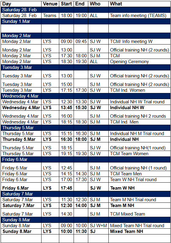 Program, startlister og resultater Junior VM hopp LIllehammer som arrangeres 4. til 8. mars 2026.
