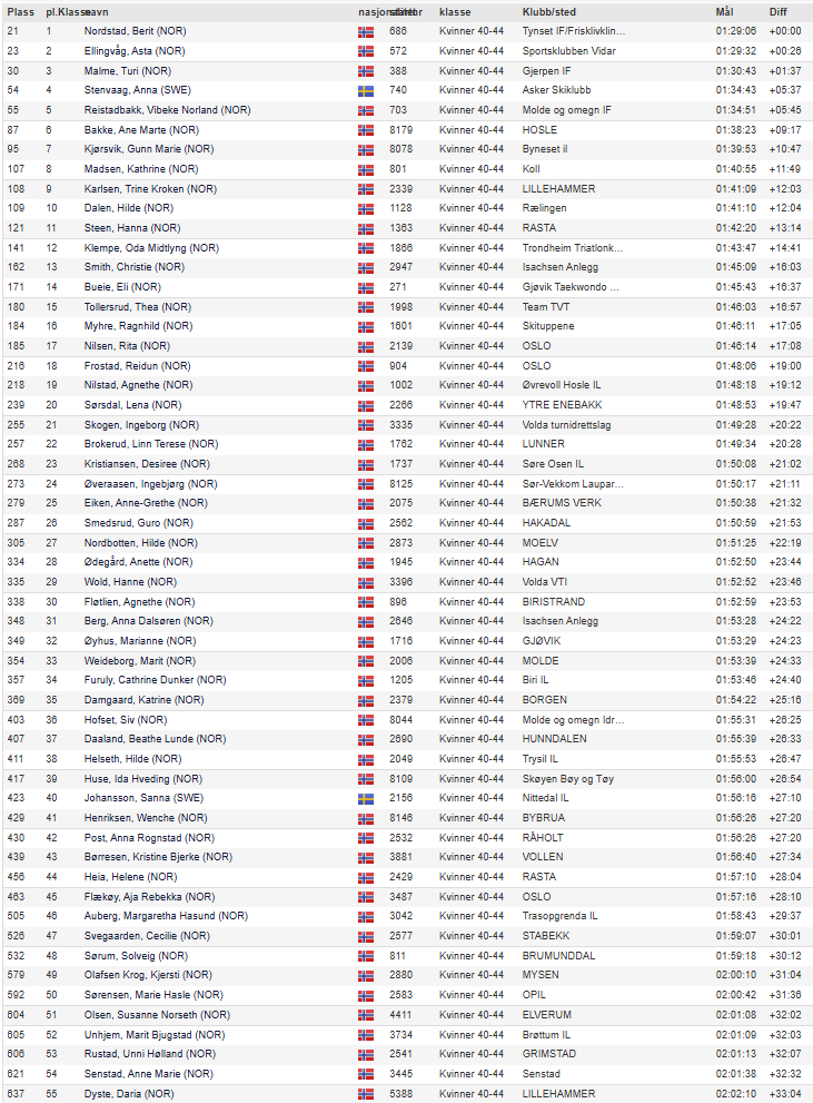 | 11.05 | Kvinner Elite klasse | <01:40:00 |