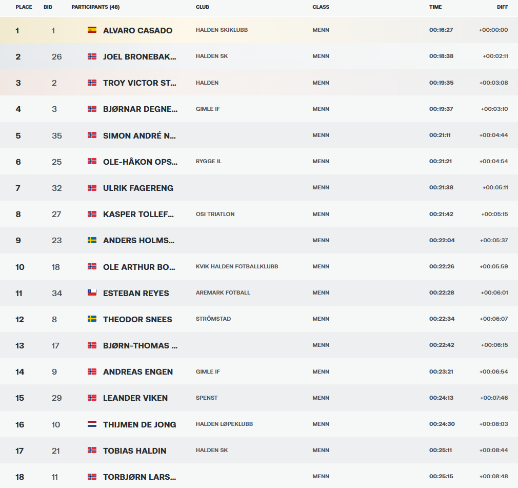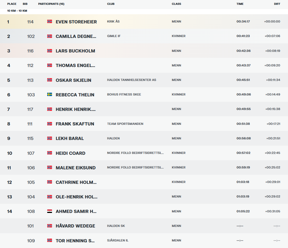 Startlister og resultater fra Karl XII løp som arrangeres 13. september 2025.