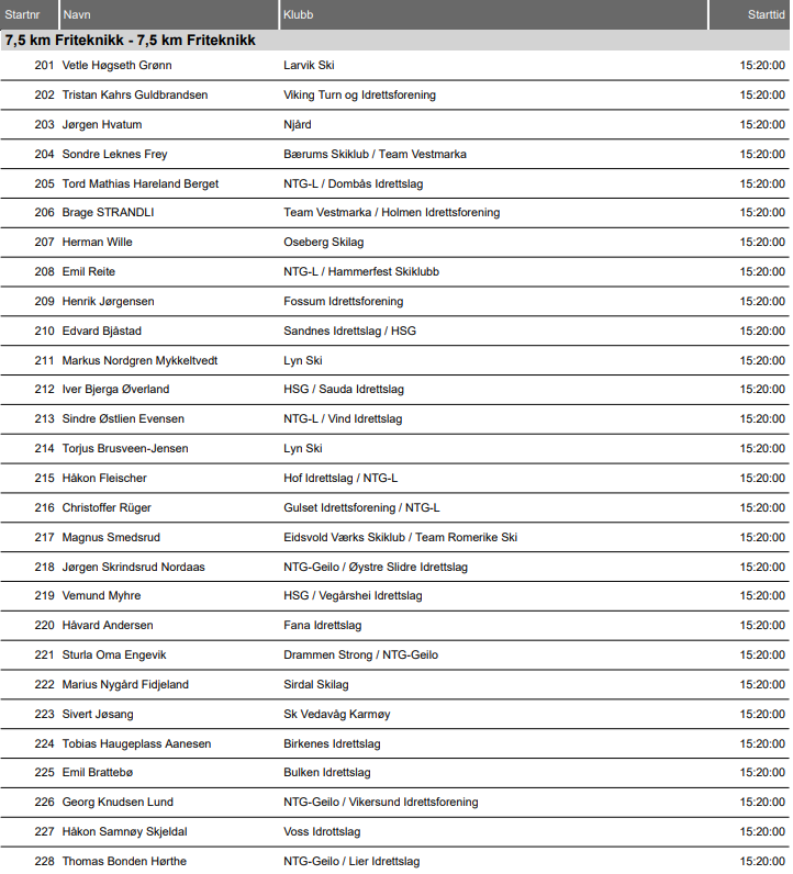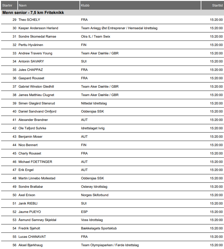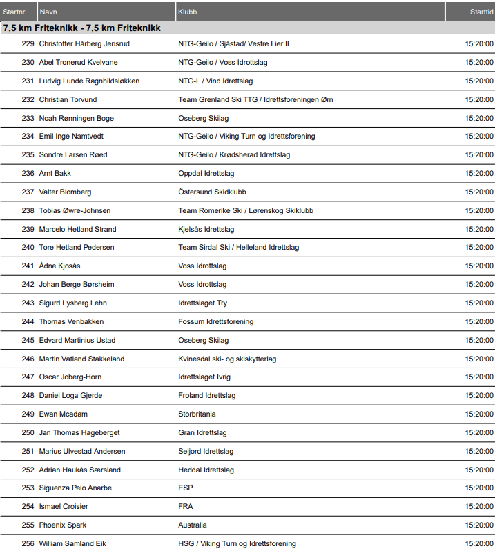 85 Fredrik Nystrand NOR MjøsSki / Team Savalen 40:29:00 10:29