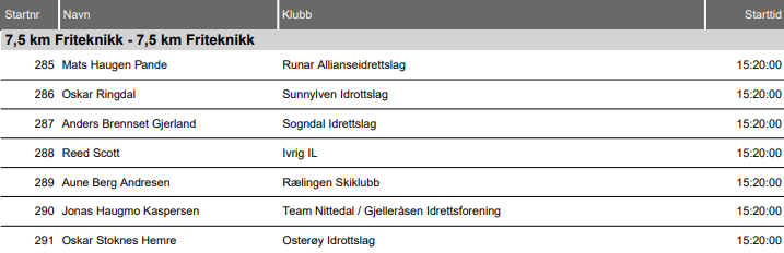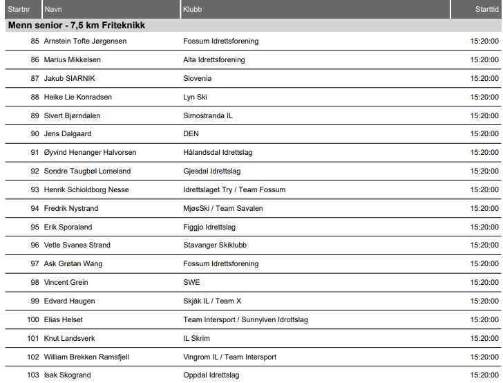 87 Edvard Haugen NOR Skjåk IL / Team X 41:37:00 11:37