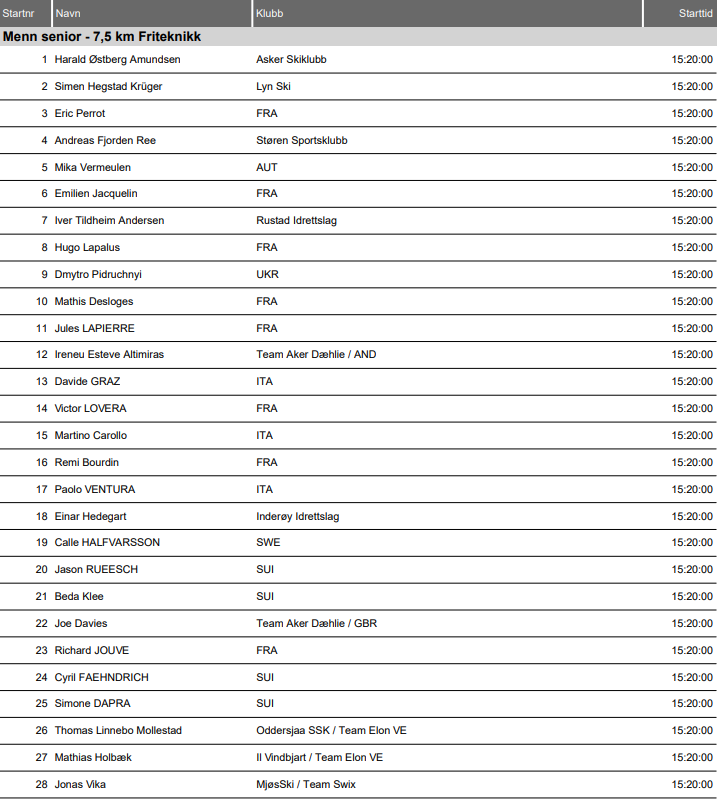 1 Simen Hegstad Krüger NOR Lyn Ski 30:00:00 00:00