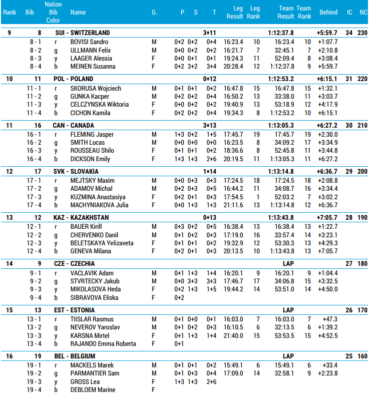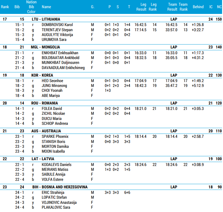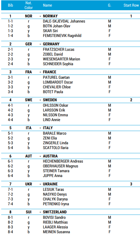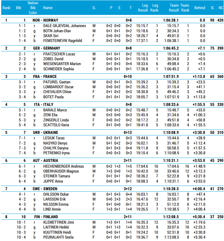 Startlister og resultater fra mixed stafett IBU Cup Obertilliach som arrangeres kl 10.45 22. desember 2024.