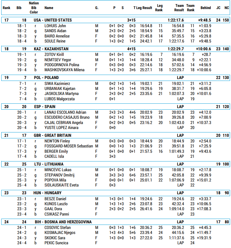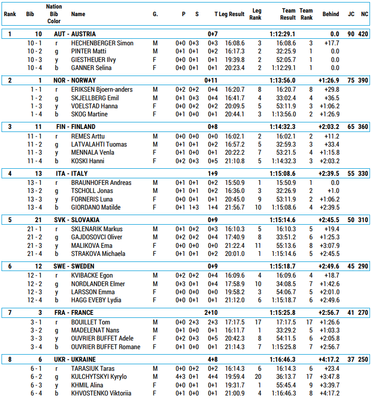 Program, startlister og resultater for Mixed stafett ungdom under Junior VM skiskyting som arrangeres 2. mars 2026.