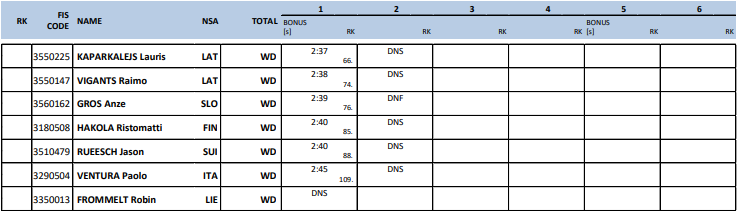 | 2022/23 | 31. desember 2022–8. januar 2023 | 7 | Val Müstair, Oberstdorf og Val di Fiemme |