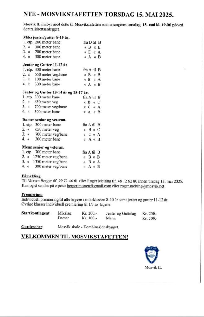 Startlister og resultater Mosvikstafetten som arrangeres torsdag 15. mai 2025.