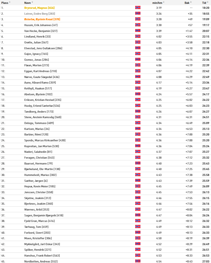 Startlister og resultater fra Nightrun Trondheim som arrangeres mandag 27. oktober 2025.