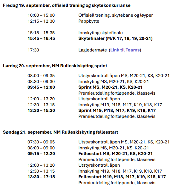 Startlister, resultater og annen innfomasjon for NM Rulleskiskyting som arrangeres 19. - 21. september 2025.