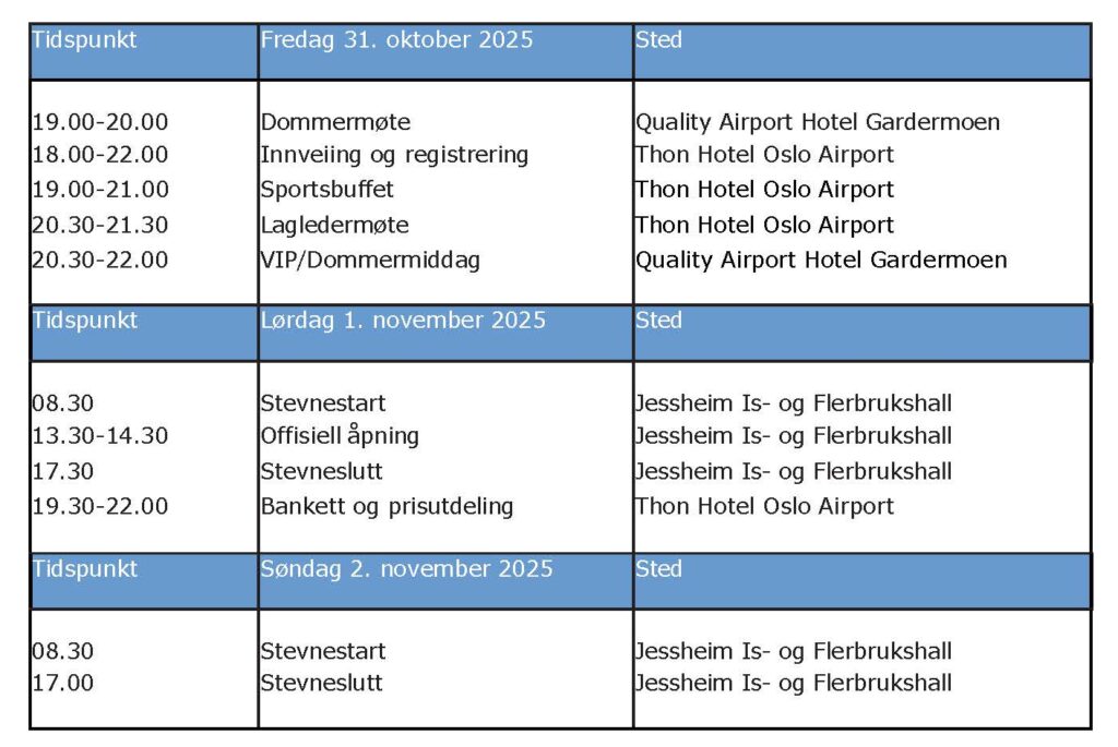 Mesterskapet vil bli avholdt i Trondheim Spektrum Hall A, som er på 4800 m2 og har en tilskuerkapasitet på nærmere 10 000 personer. NM har vært arrangert i Trondheim flere ganger tidligere, og vi gleder oss til å være vertskap for årets mesterskap. Vi håper at du og din klubb benytter anledningen til å komme.