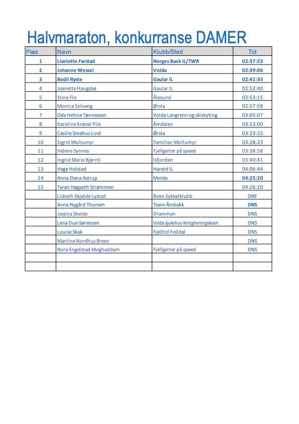 (Det går også ein tidlegstart kl. 08.00 for dei som trur dei brukar meir enn 6-7 timar) - Halvmaraton 21km, mosjon