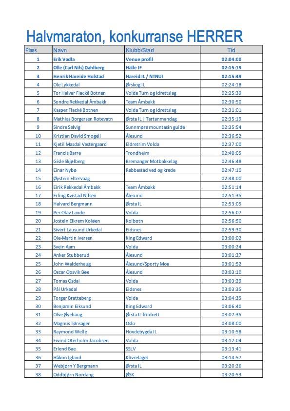 - Halvmaraton (ei runde á 21,1km og 1350 høgdemeter)